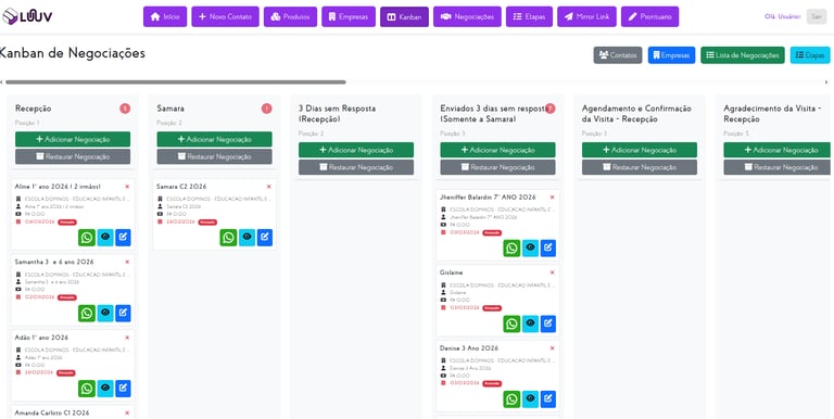 LUUV CRM é uma plataforma desenvolvida para simplificar a gestão de clientes, vendas e processos comerciais. Com uma interface intuitiva e recursos de automação, o sistema ajuda empresas a organizar contatos, acompanhar oportunidades e melhorar o relacionamento com clientes, aumentando a eficiência da equipe e potencializando resultados.
